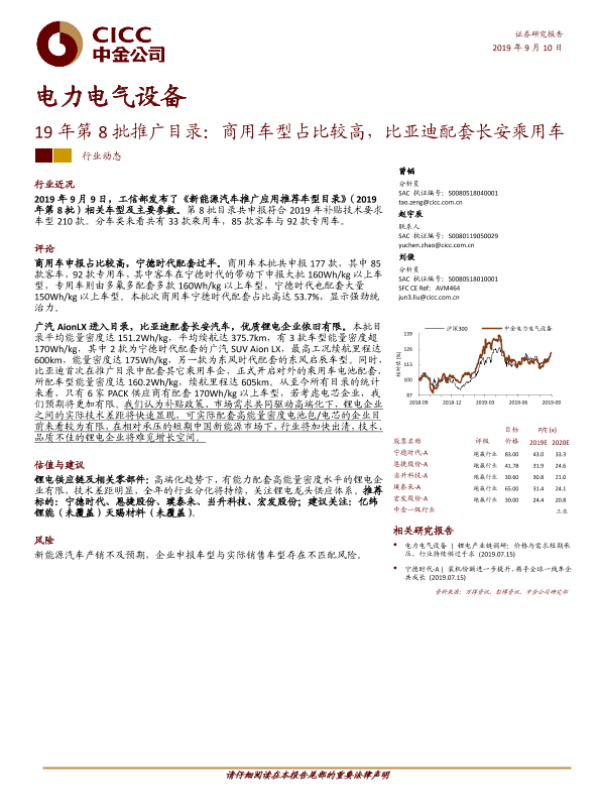 【中金公司】【20190910】电力电气设备行业19年第8批推广目录:商用车型占比较高,比亚迪配套长安乘用车-11页
