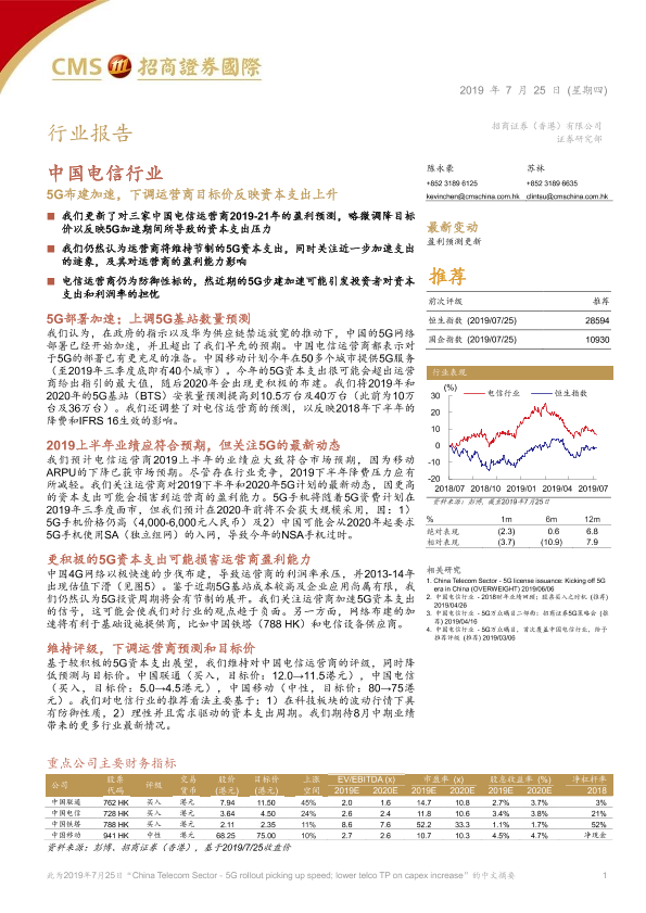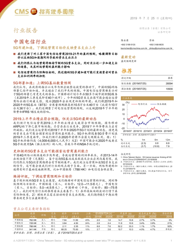 【招商证券国际】【20190725】电信行业:5G布建加速,下调运营商目标价反映资本支出上升-12页