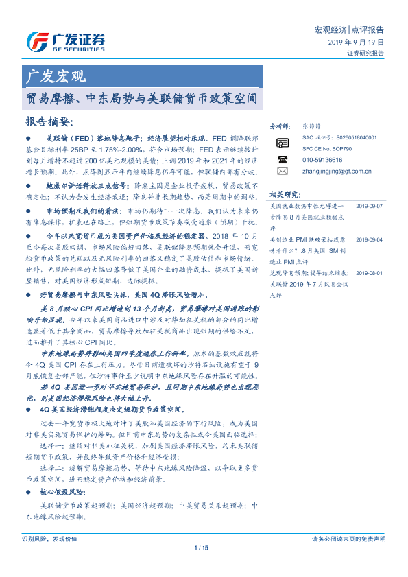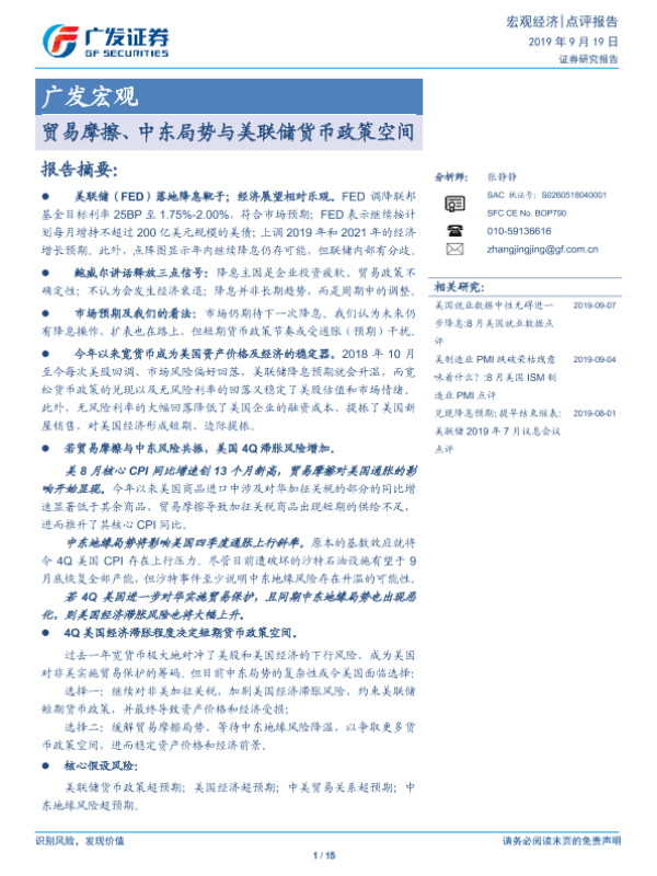 【广发证券】【20190919】贸易摩擦、中东局势与美联储货币政策空间-16页