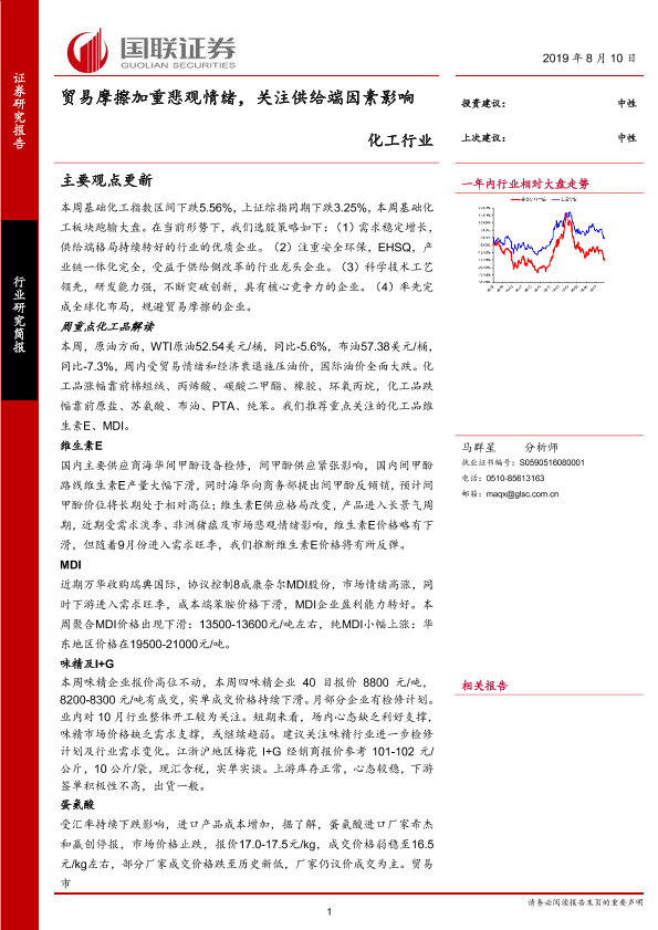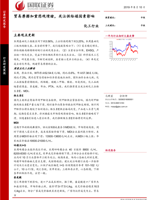 【国联证券】【20190810】化工行业:贸易摩擦加重悲观情绪,关注供给端因素影响-28页