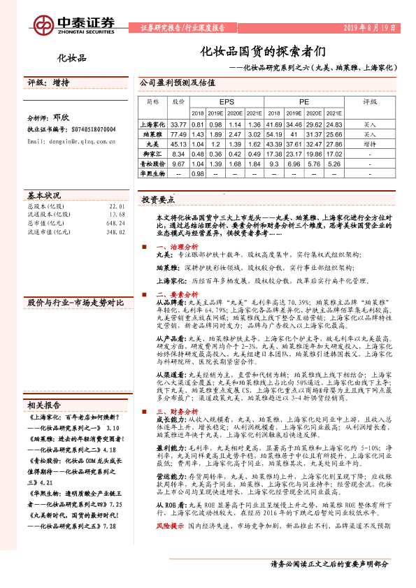 【中泰证券】【20190819】化妆品行业研究系列之六(丸美、珀莱雅、上海家化):化妆品国货的探索者们-31页