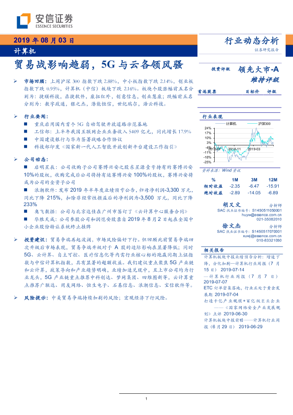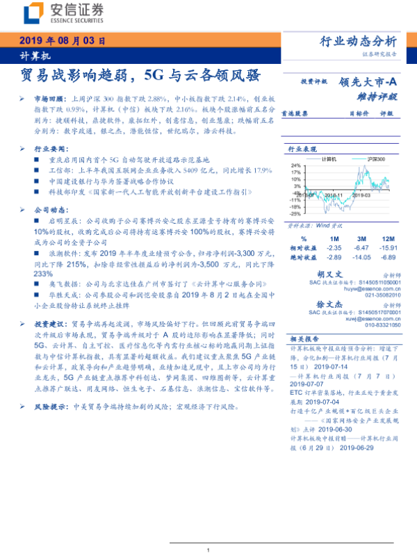 【安信证券】【20190803】计算机行业:贸易战影响趋弱,5G与云各领风骚-13页