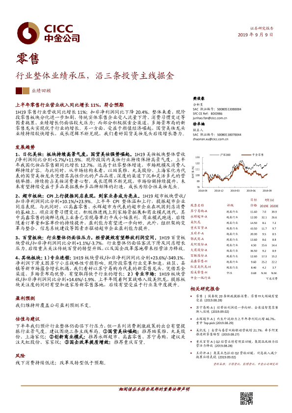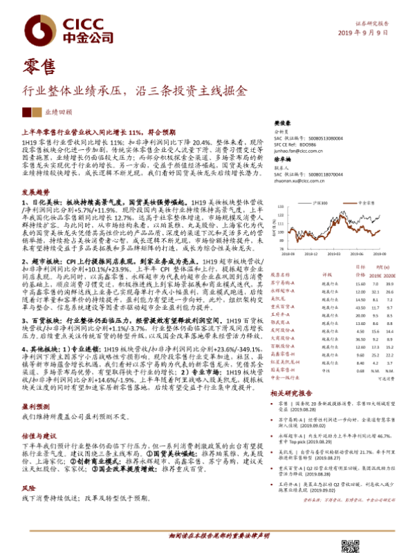 【中金公司】【20190909】零售行业:行业整体业绩承压,沿三条投资主线掘金-22页