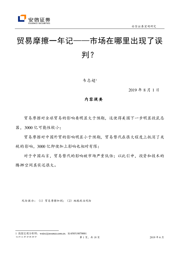 【安信证券】【20190801】贸易摩擦一年记:市场在哪里出现了误判?-19页