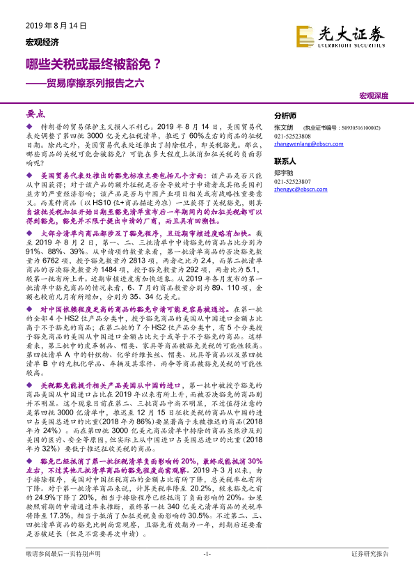 【光大证券】【20190814】贸易摩擦系列报告之六:哪些关税或最终被豁免?-14页