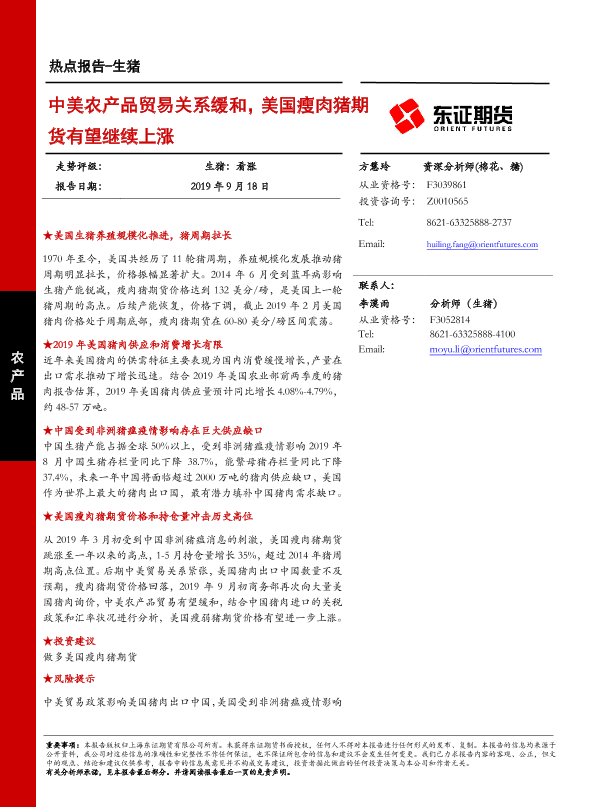 【东证期货】【20190918】中美农产品贸易关系缓和,美国瘦肉猪期货有望继续上涨-34页