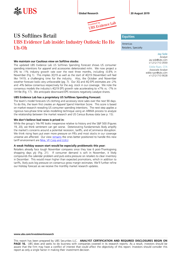 【瑞银】【20190820】瑞银-美股-零售行业-美国软线零售业行业展望-21页