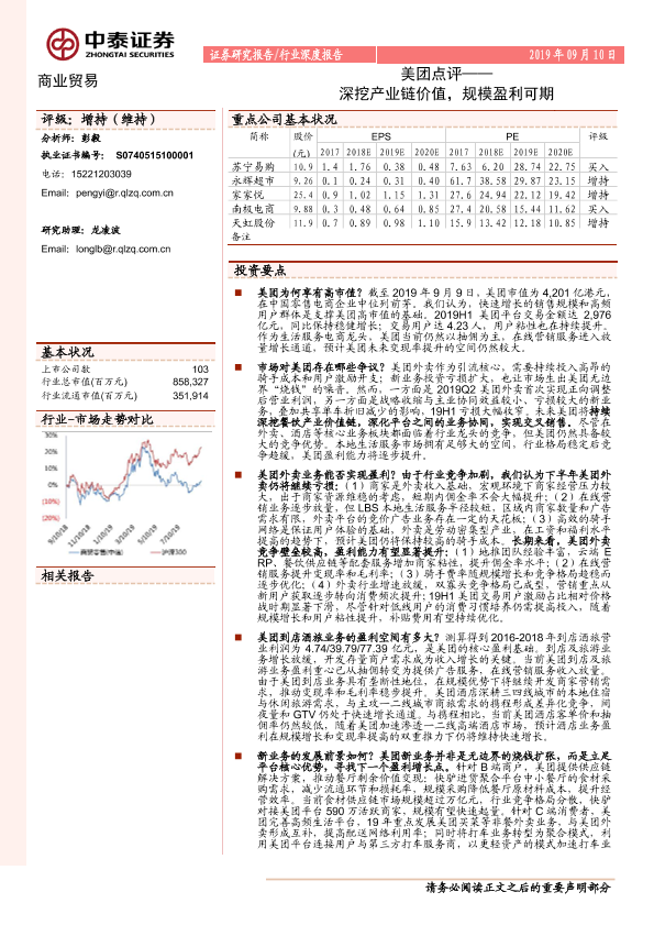 产业链价值 商业贸易 美团点评 规模盈利 证券分析