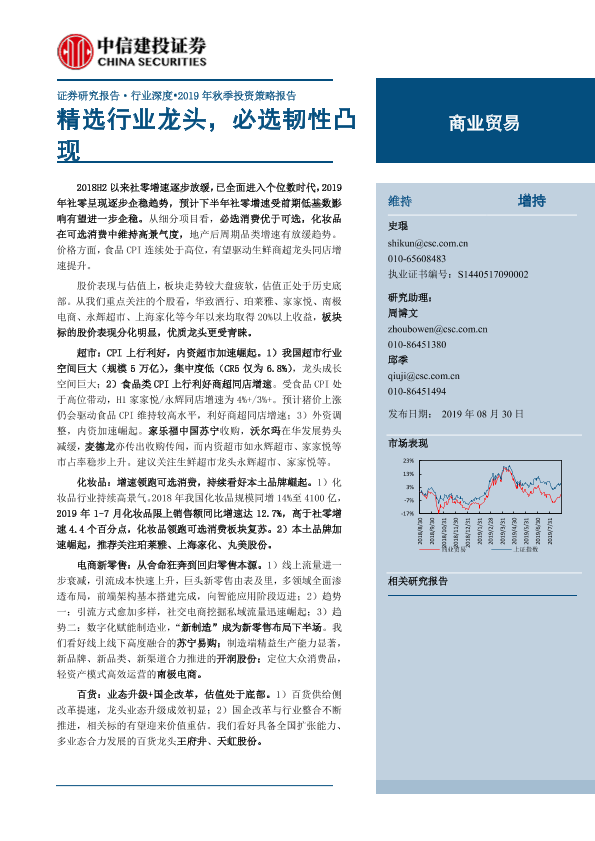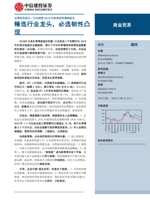 【中信建投证券】【20190830】商业贸易行业2019年秋季投资策略报告:精选行业龙头,必选韧性凸现-34页