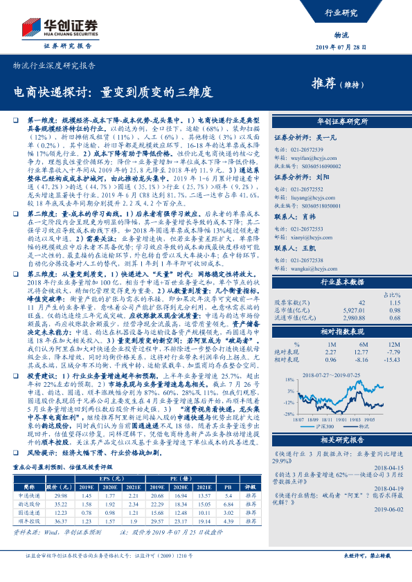 【华创证券】【20190728】物流行业深度研究报告:电商快递探讨,量变到质变的三维度-32页