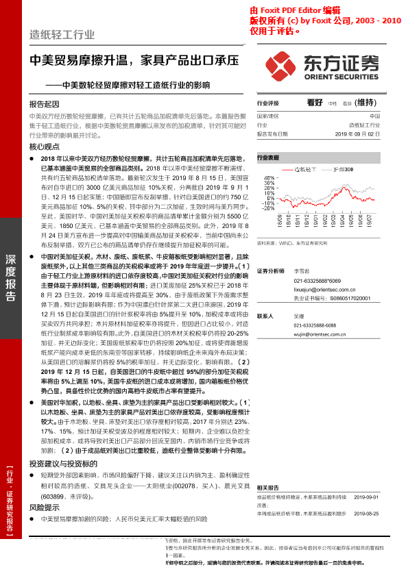 【东方证券】【20190902】中美数轮经贸摩擦对轻工造纸行业的影响:中美贸易摩擦升温,家具产品出口承压-24页
