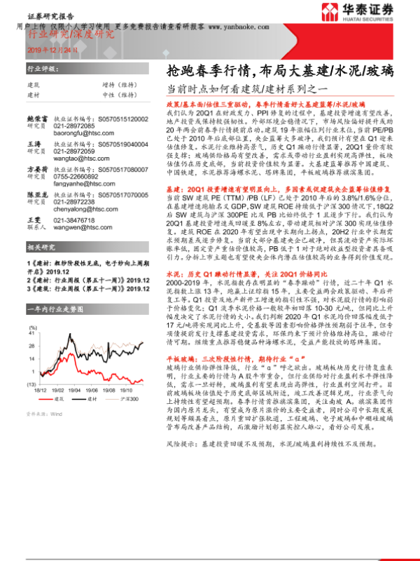 【华泰证券】【20191224】建筑建材行业:当前时点如何看建筑建材系列之一,抢跑春季行情,布局大基建水泥玻璃-26页
