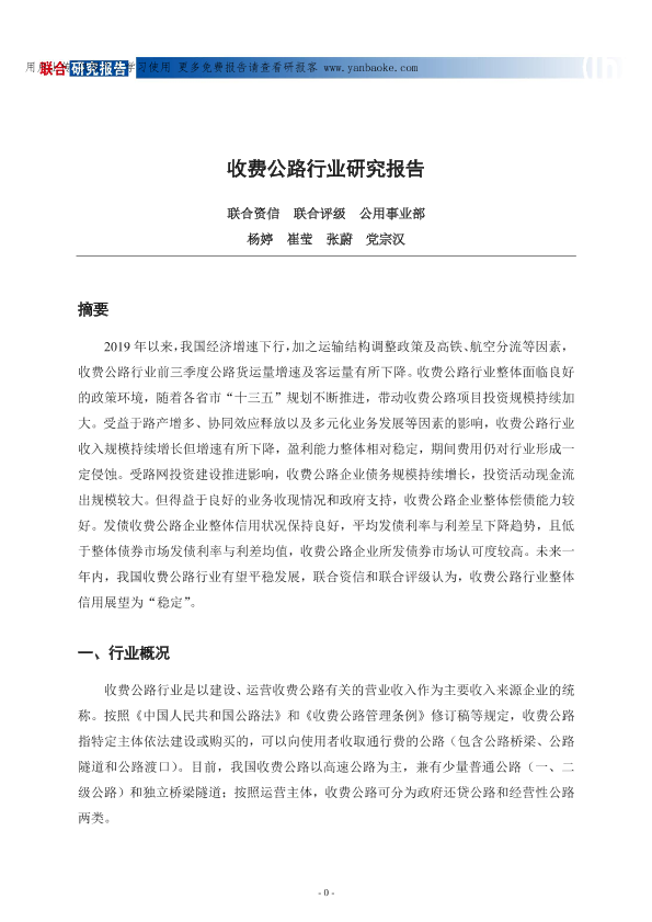 【联合资信 联合评级 公用事业部】【2019】收费公路行业研究报告-17页