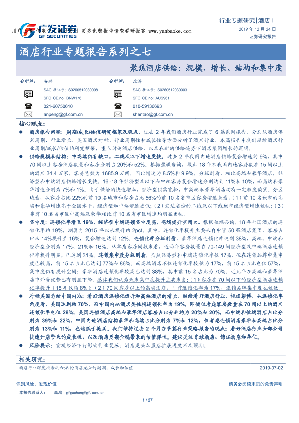 【广发证券】【20191224】聚焦酒店供给:规模、增长、结构和集中度-27页