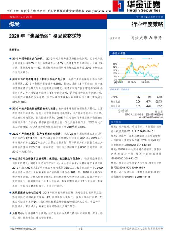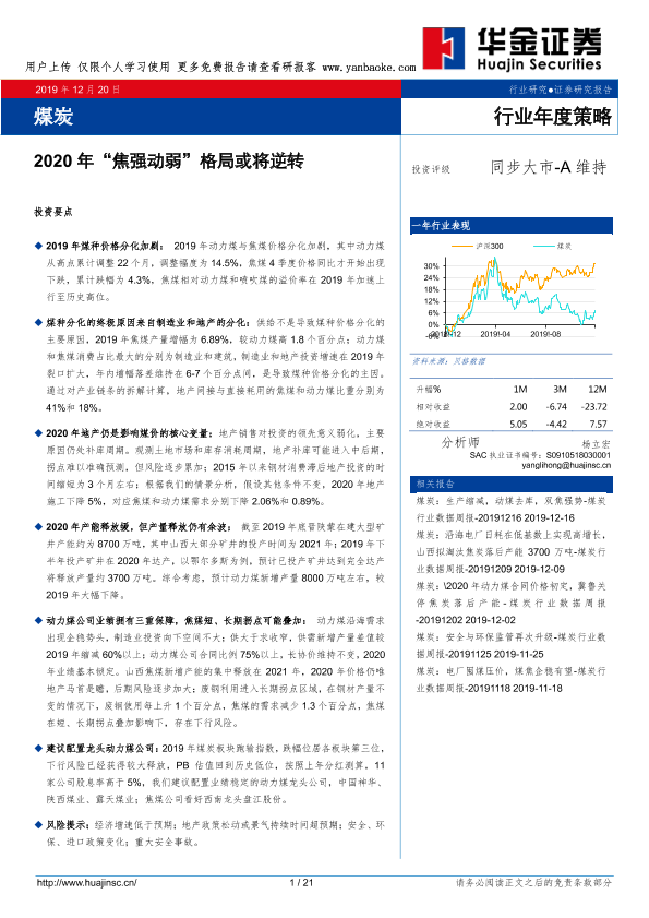 【华金证券】【20191220】煤炭行业年度策略-21页
