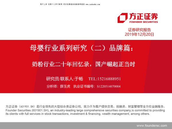【方正证券】【20191220】母婴行业系列研究(二)品牌篇:奶粉行业二十年回忆录,国产崛起正当时-93页