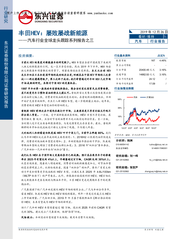 【东兴证券】【20191226】丰田HEV:屡败屡战新能源-14页