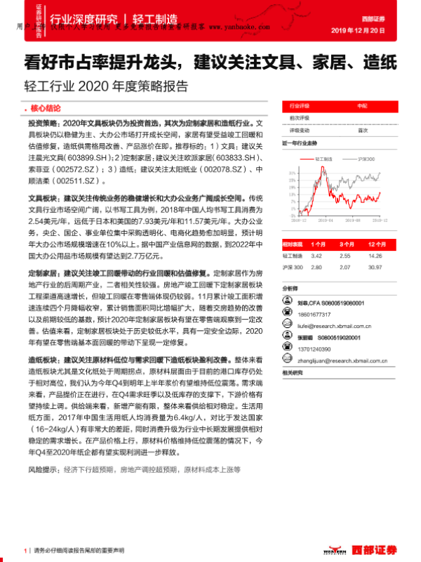 【西部证券】【20191220】轻工行业2020年度策略报告:看好市占率提升龙头,建议关注文具、家居、造纸-46页