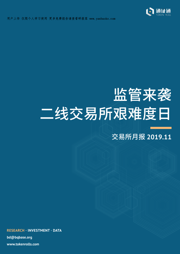 【通证通研究院】【20191214】区块链行业交易所月报(2019.11)-14页