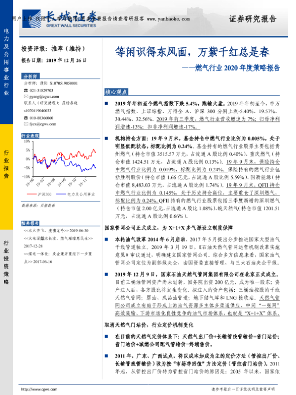 市场分析 年度策略 投资评级 政策改革 燃气行业