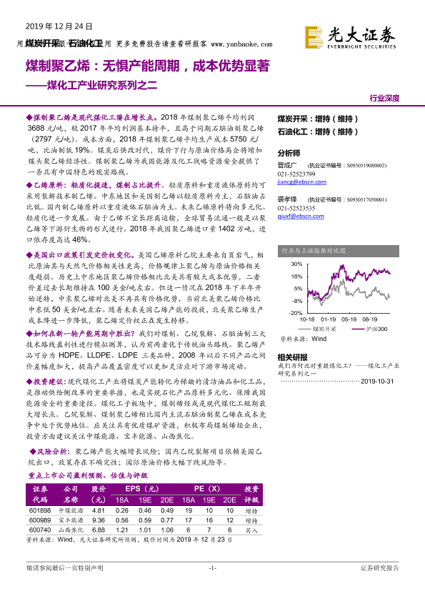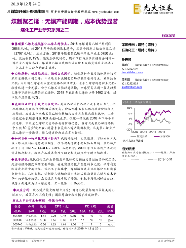 【光大证券】【20191224】煤制聚乙烯,无惧产能周期,成本优势显著-26页