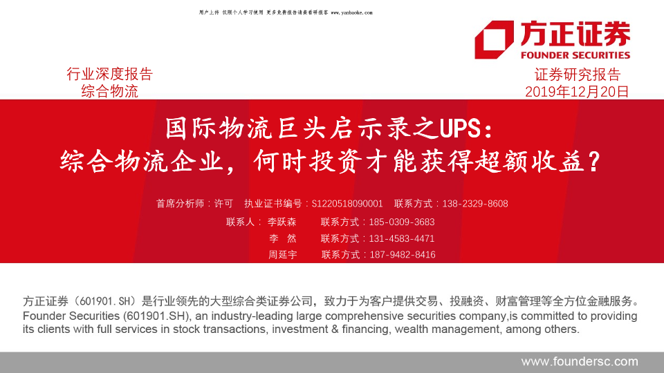 【方正证券】【20191220】物流行业:国际物流巨头启示录之UPS,综合物流企业,何时投资才能获得超额收益?-34页