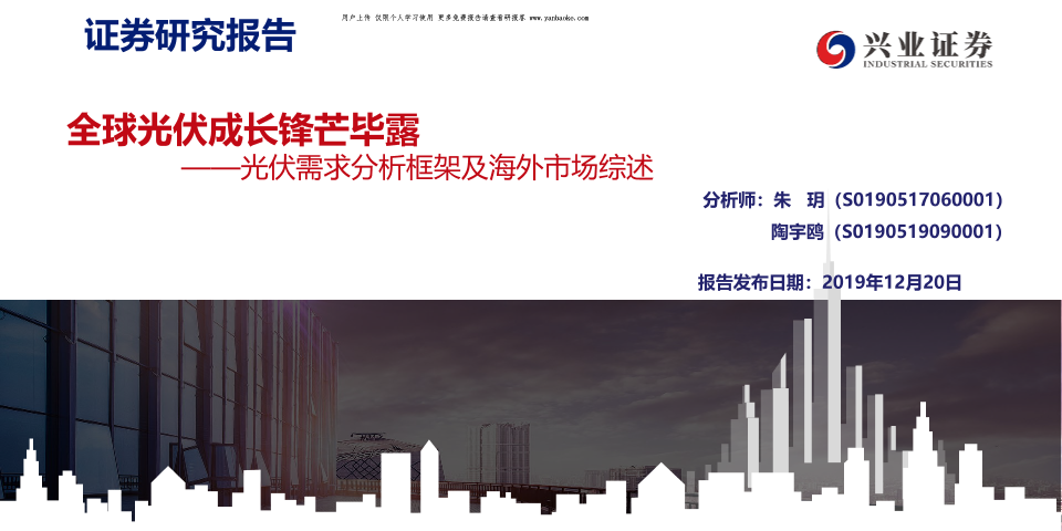 【兴业证券】【20191220】全球光伏成长锋芒毕露——光伏需求分析框架及海外市场综述-48页