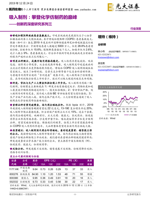 【光大证券】【20191224】医药生物行业创新药深度研究系列三:吸入制剂,攀登化学仿制药的巅峰-41页