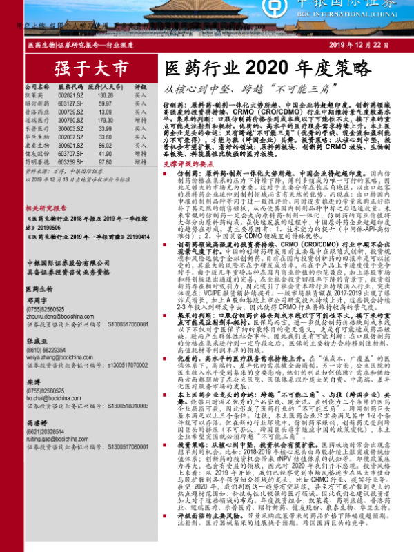 【中银证券】【20191222】医药行业2020年度策略:从核心到中坚、跨越“不可能三角”-73页