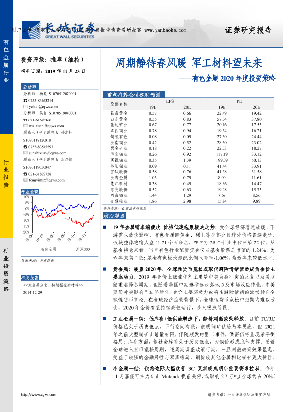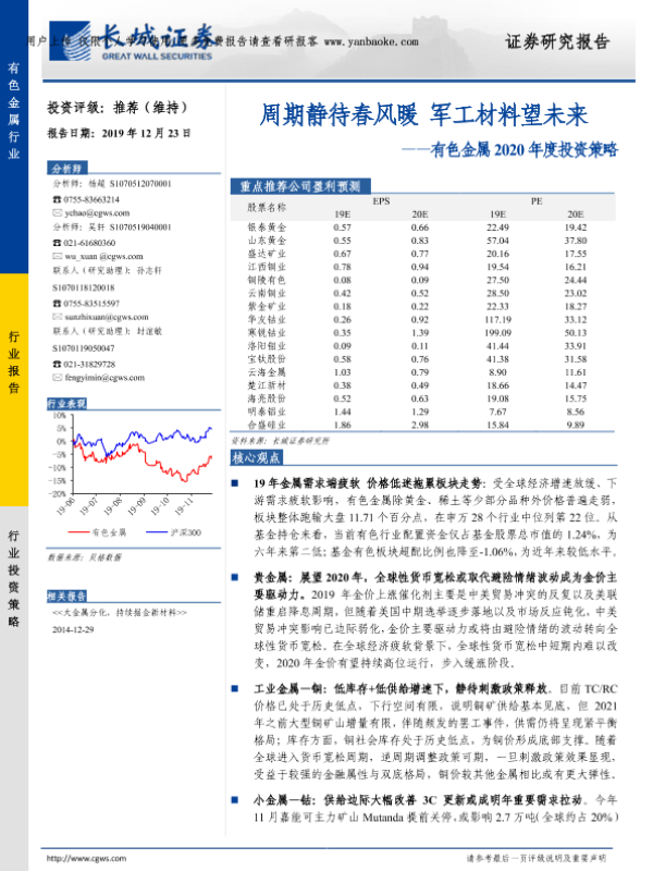 【长城证券】【20191223】有色金属行业2020年度投资策略:周期静待春风暖,军工材料望未来-29页