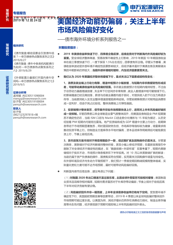 【申万宏源】【20191224】美国经济动能仍偏弱,关注上半年市场风险偏好变化-22页