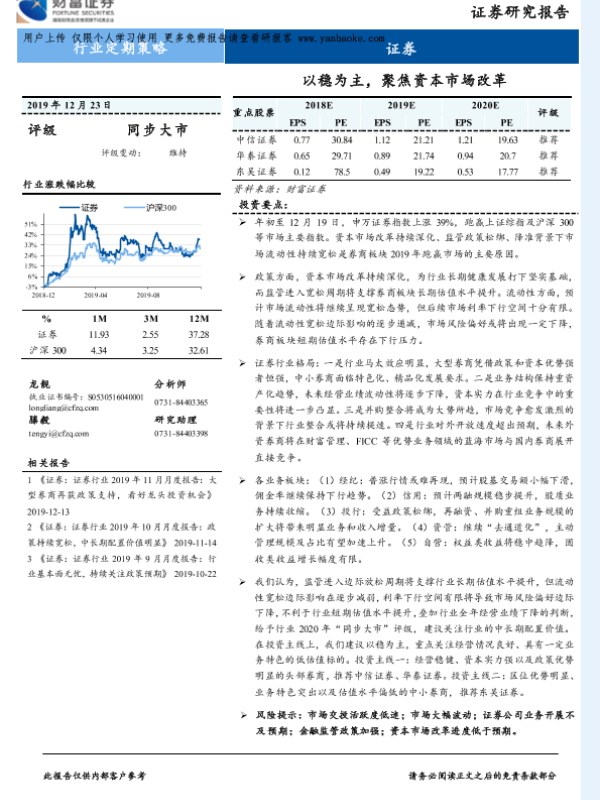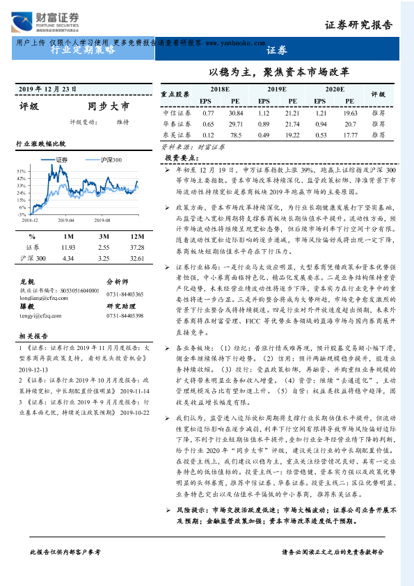 【财富证券】【20191223】证券行业:以稳为主,聚焦资本市场改革-20页