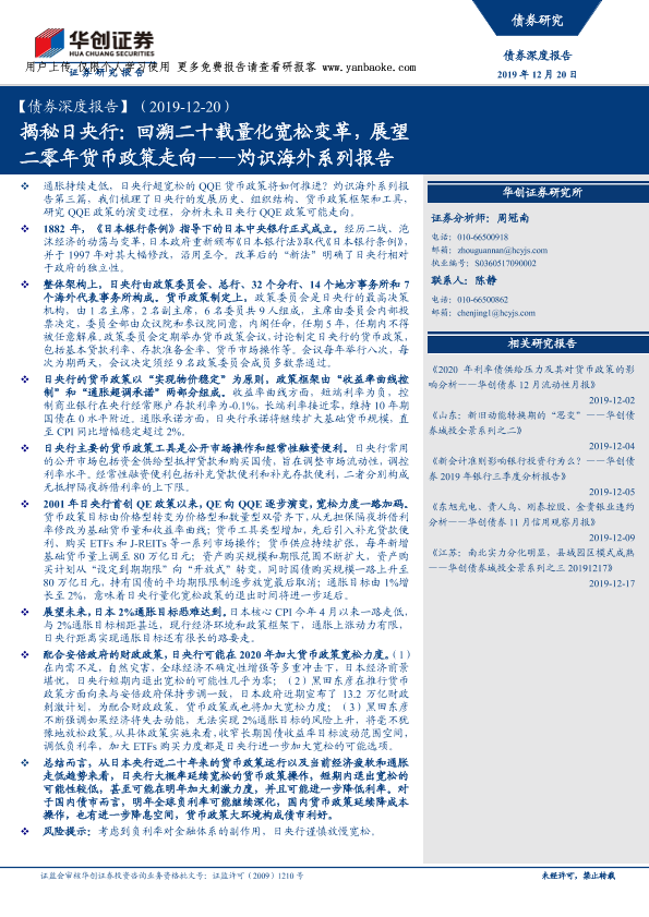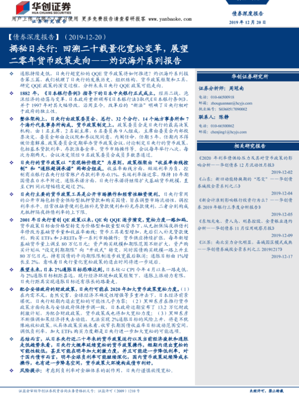 【华创证券】【20191220】揭秘日央行,回溯二十载量化宽松变革,展望二零年货币政策走向-20页
