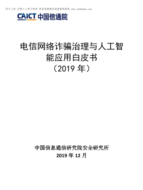【中国信息通信研究院安全研究所】【2019】电信网络诈骗治理与人工智能应用-45页