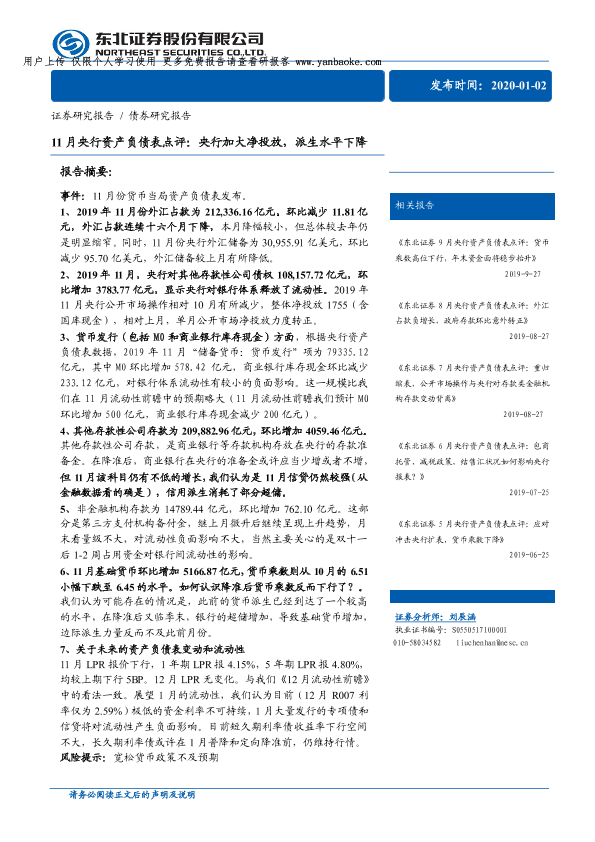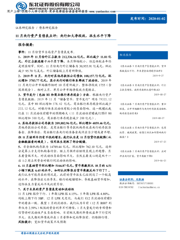 【东北证券】【20200102】11月央行资产负债表点评-14页