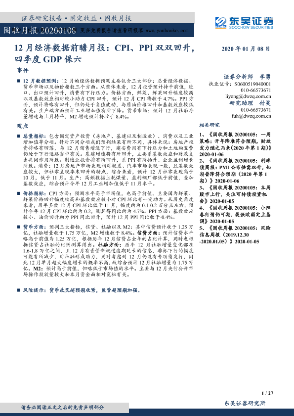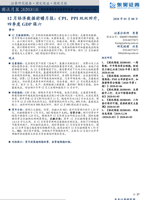 【东吴证券】【20200108】12月经济数据前瞻月报:CPI、PPI双双回升,四季度GDP保六-27页