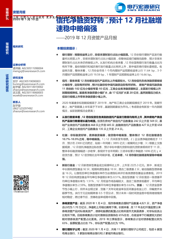 【申万宏源】【20200110】2019年12月资管产品月报-15页
