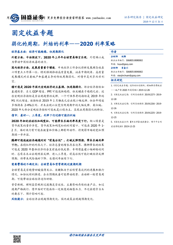 【国盛证券】【20191231】2020利率策略:弱化的周期,纠结的利率-22页