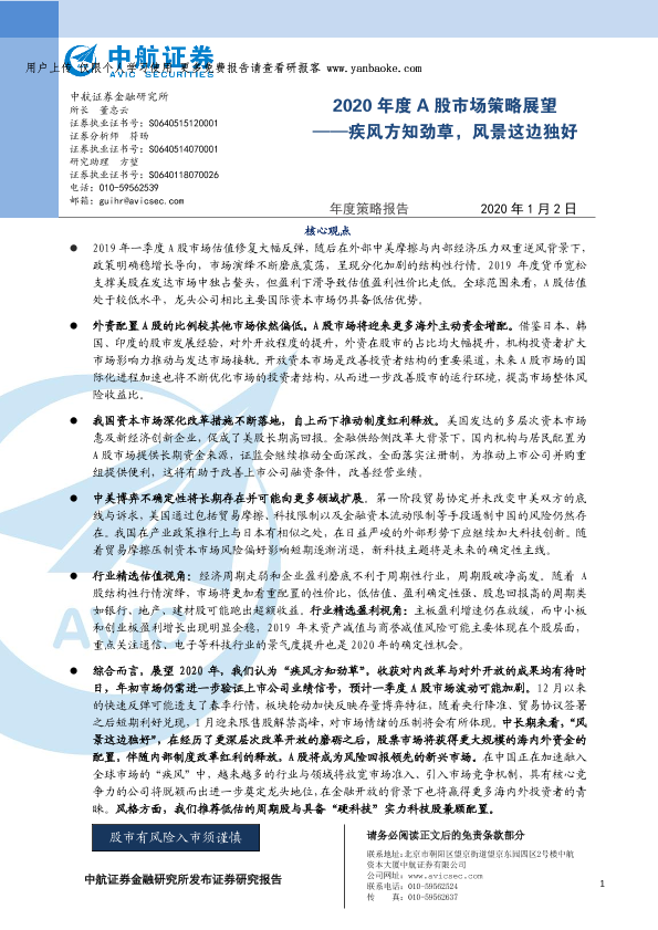 【中航证券】【20200102】2020年度A股市场策略展望:疾风方知劲草,风景这边独好-35页