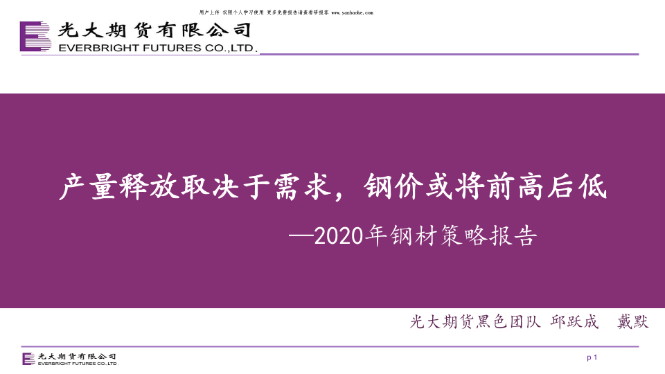 【光大期货】【20191230】2020年钢材策略报告:产量释放取决于需求,钢价或将前高后低-33页