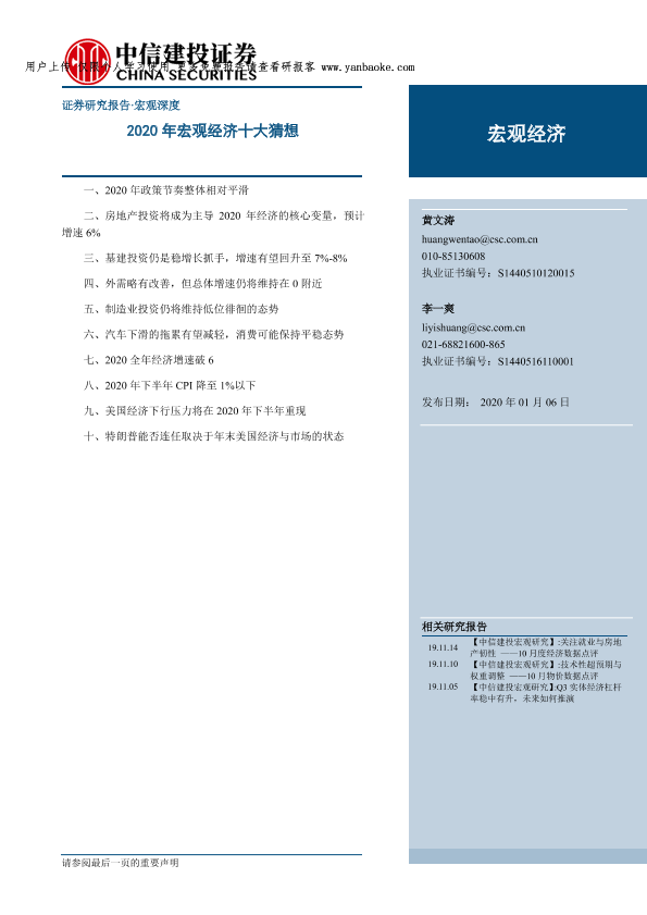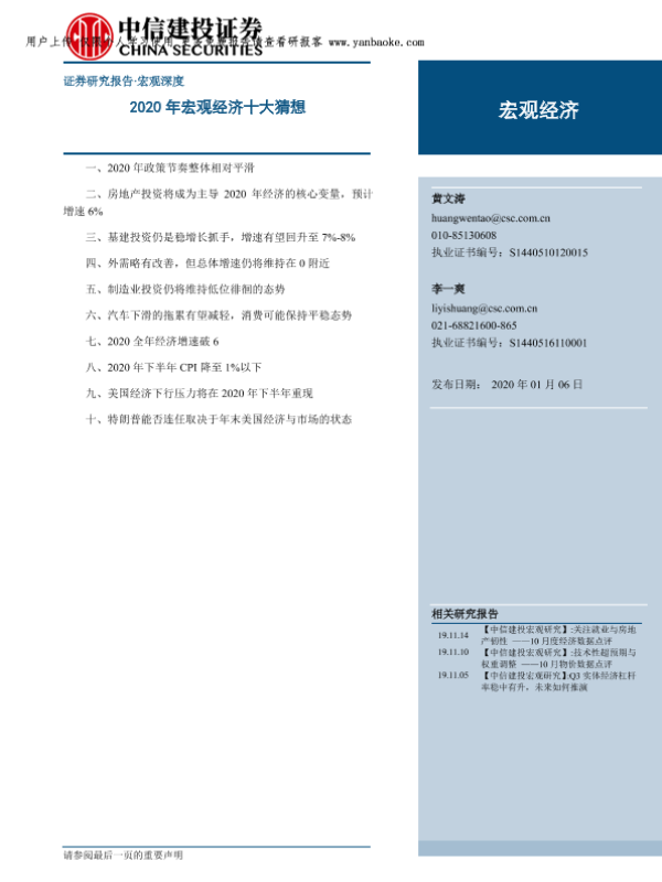 【中信建投证券】【20200106】2020年宏观经济十大猜想-14页