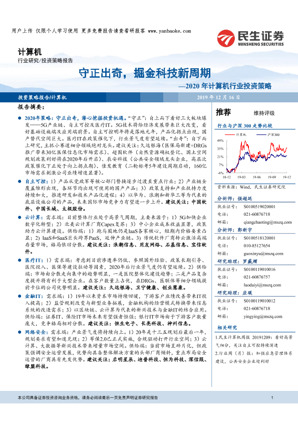 【民生证券】【20191216】2020年计算机行业投资策略:守正出奇,掘金科技新周期-86页
