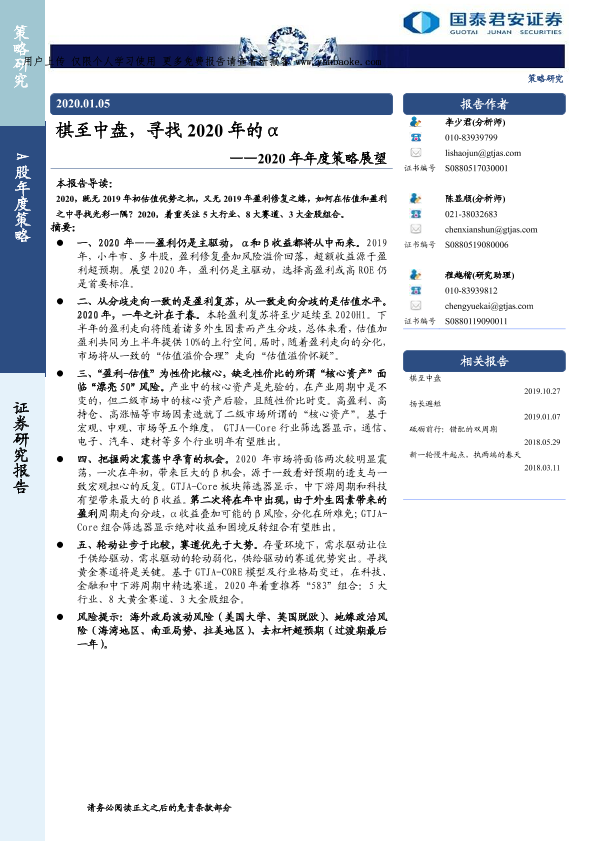 【国泰君安证券】【20200105】2020年年度策略展望:棋至中盘,寻找2020年的α-31页