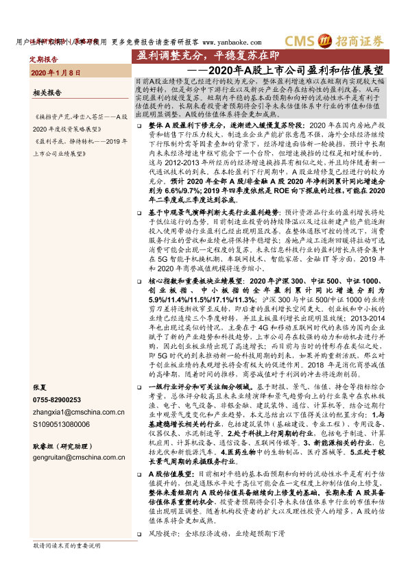 【海通证券】【20200108】2020年A股上市公司盈利和估值展望-35页
