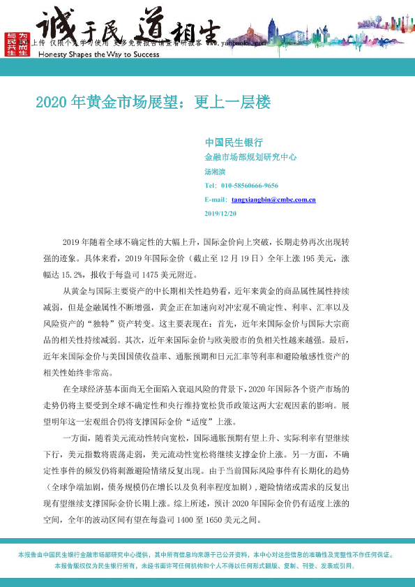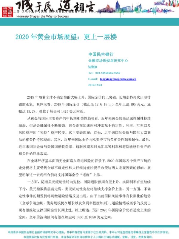 【中国民生银行】【20191220】2020年黄金市场展望:更上一层楼-12页