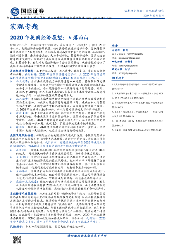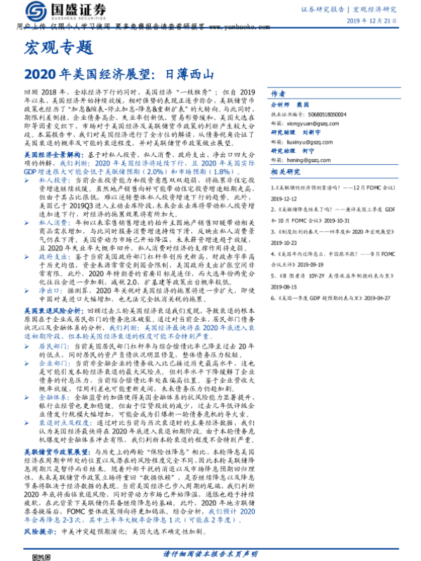 【国盛证券】【20191221】2020年美国经济展望:日薄西山-27页
