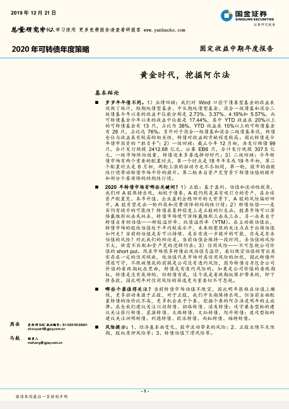 【国金证券】【20191221】2020年可转债年度策略:黄金时代,挖掘阿尔法-32页