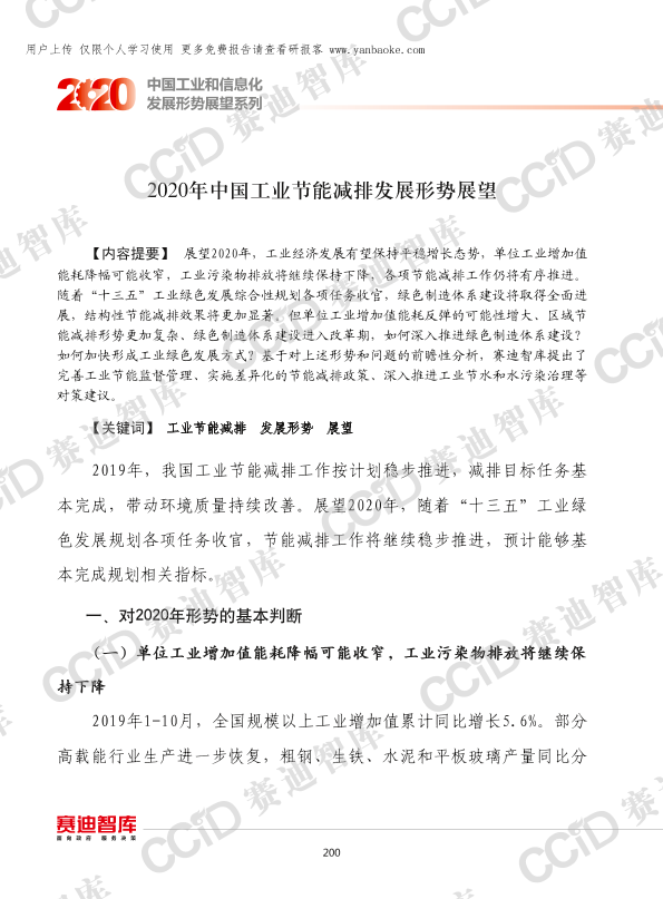 【赛迪智库】【2020】2020年中国工业节能减排发展形势展望-12页