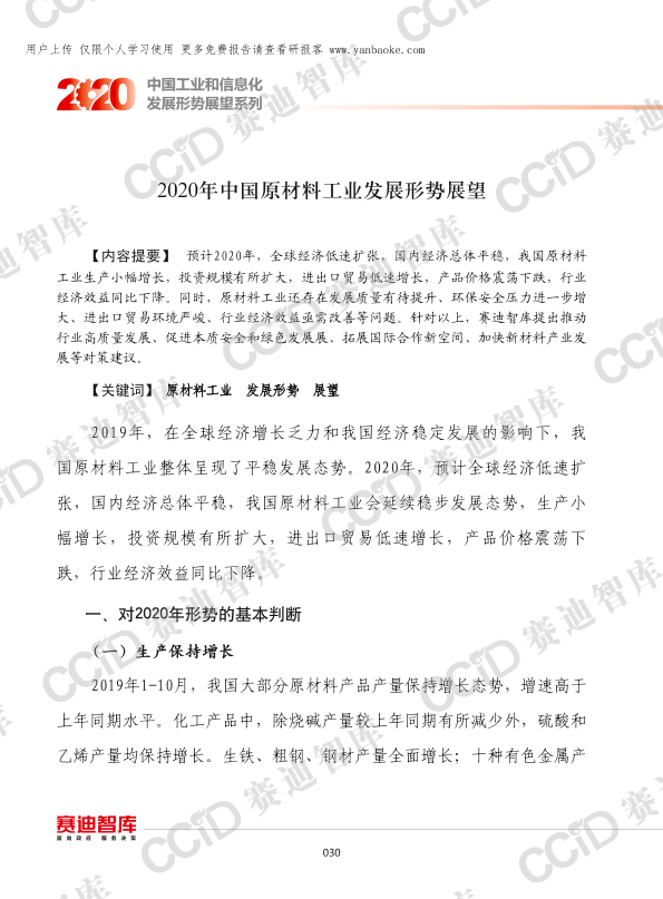 【赛迪智库】【2020】2020年中国原材料工业发展形势展望-17页