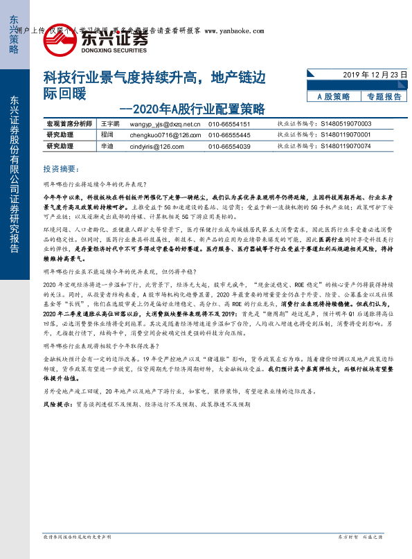 【东兴证券】【20191223】2020年A股行业配置策略-12页